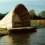 When a visitor approaches Lookout, it is clear that a platform is provided to walk out over the water. Once on the platform the canopy and seat become apparent and invite the visitor to sit in that enclosed space. When sat on the internal bench seat, the canopy cuts off any view of the adjacent banks and all that the visitor can be aware of is the wide surface of water to the front, and reflected light and sound. To all intent and purpose the visitor could be sitting on a raft right out in the middle of the lake.
