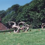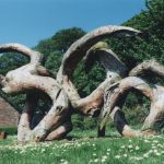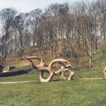 This sculpture was produced as part of an artist in residence position in Brampton, Cumbria. It was conceived in response to combining the character of the twists and curves of the scotch pine to be used for the work, and the momentum of the sloping bank upon which the work was to be installed.